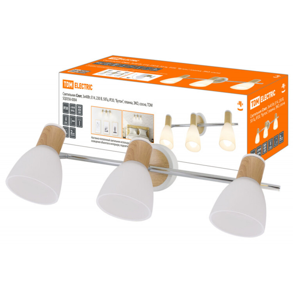 Описание Светильник Спот, 3х40Вт, Е14, 230 В, 50 Гц, IP20, "Бутон", планка, ЭКО, сосна, SQ0356-0004