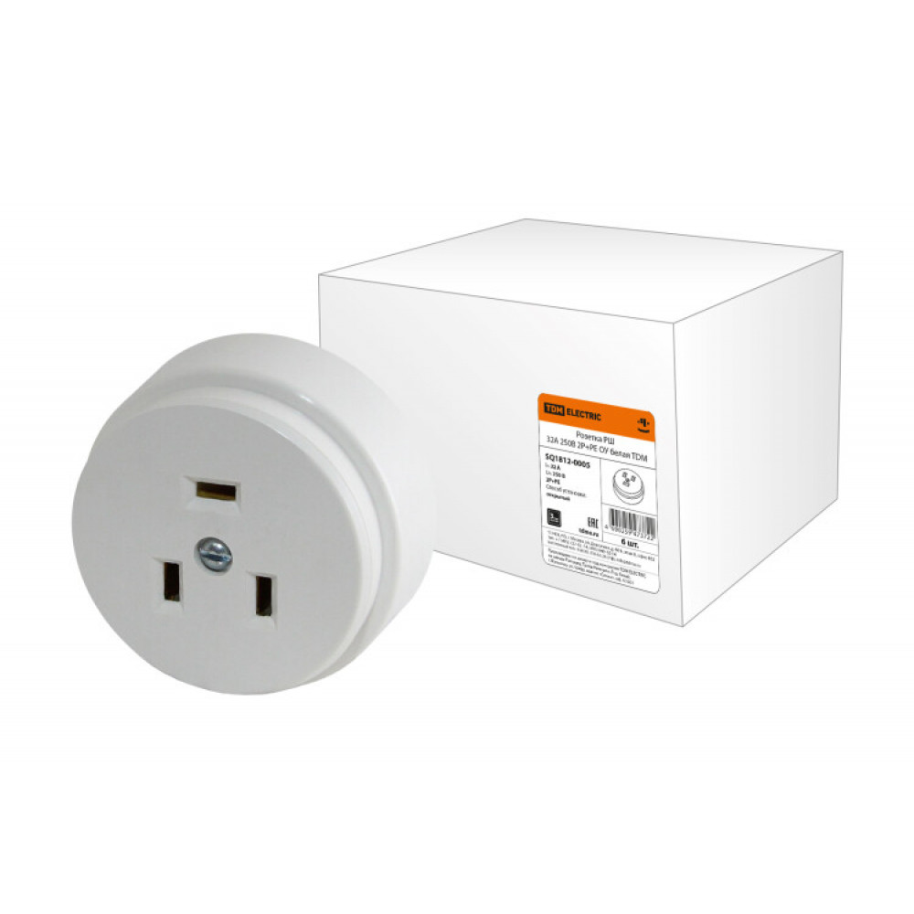 Описание Розетка РШ 32А 250В 2Р+РЕ ОУ белая SQ1812-0005