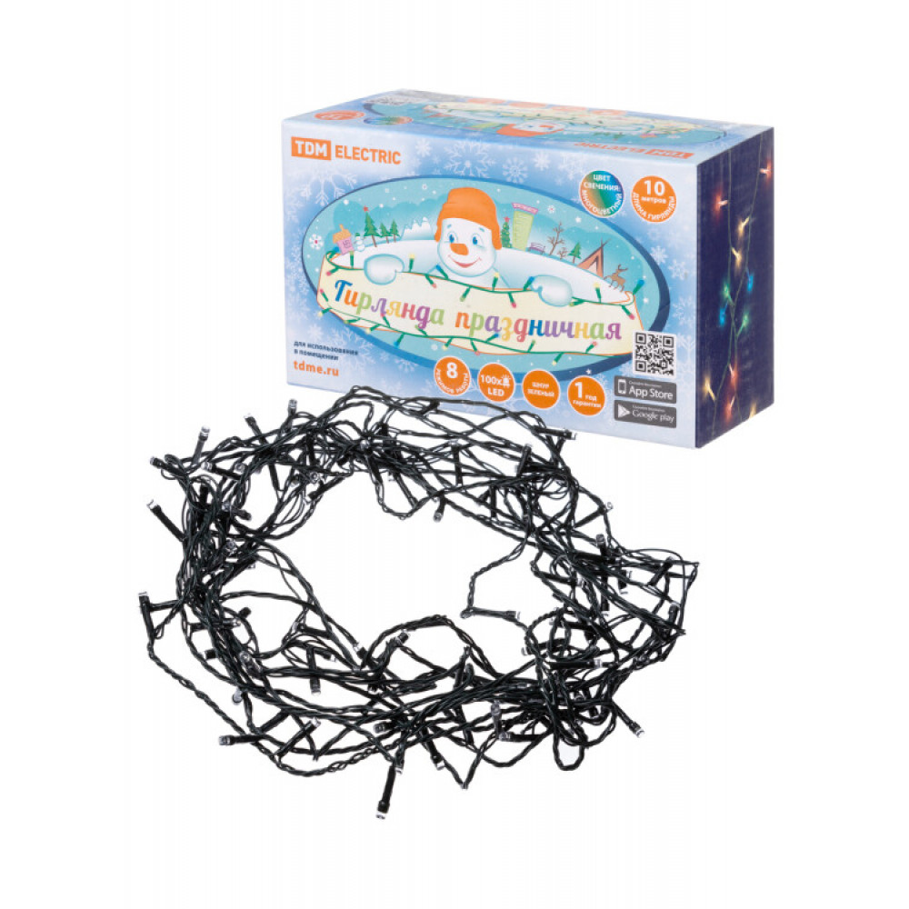 Гирлянда светодиодная СГ100MЗ10, многоцвет., зеленый шнур, 10м, 8 режимов, 250 В, SQ0361-0041, Светильник декоративный