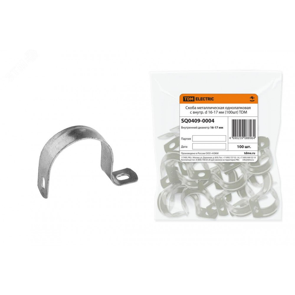Описание Скоба металлическая однолапковая с внутр. d 16-17 мм (100шт) SQ0409-0004