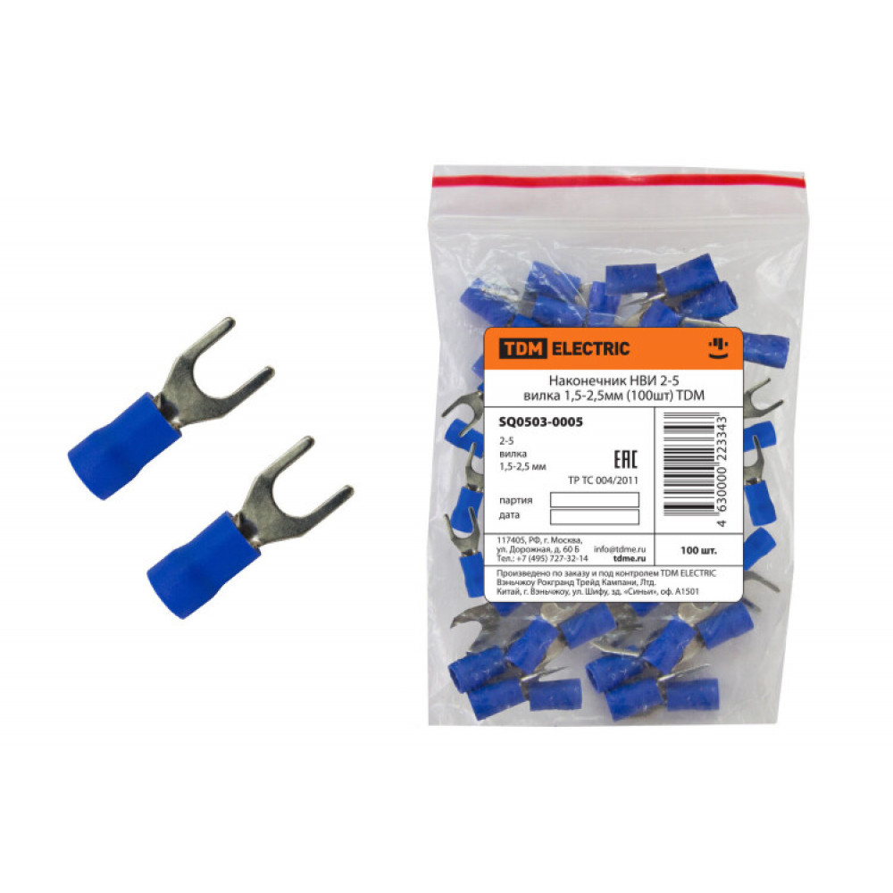 Наконечник НВИ 2-5 вилка 1,5-2,5мм (100шт) SQ0503-0005, Наконечник, гильза