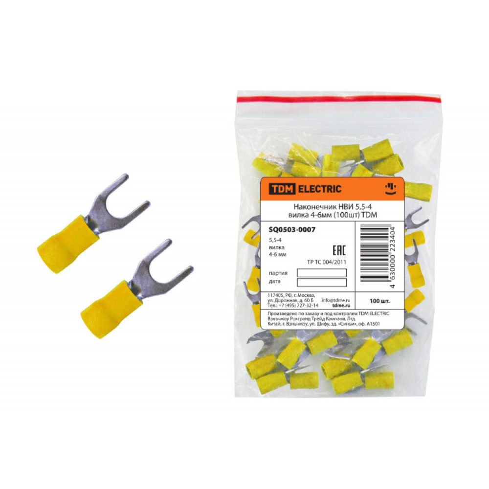 Наконечник НВИ 5,5-4 вилка 4-6мм (100шт) SQ0503-0007, Наконечник, гильза