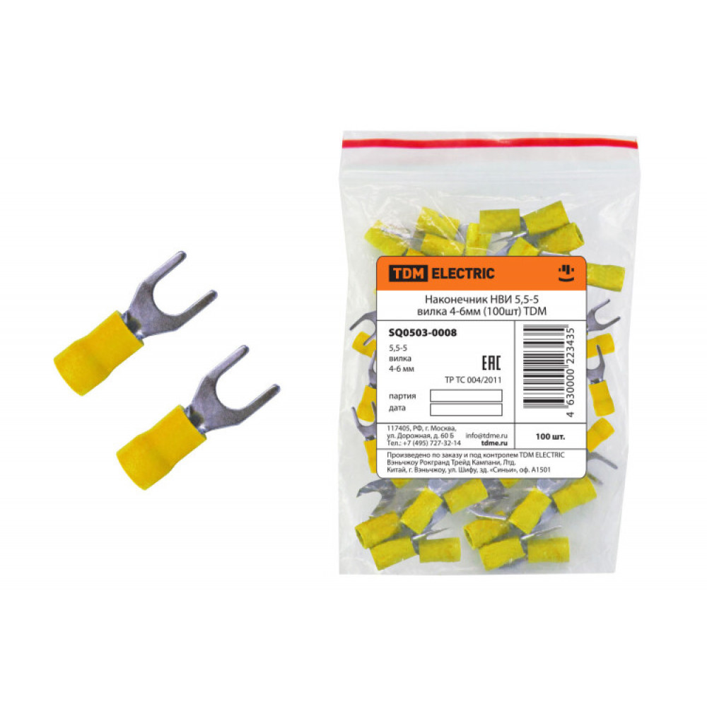 Наконечник НВИ 5,5-5 вилка 4-6мм (100шт) SQ0503-0008, Наконечник, гильза
