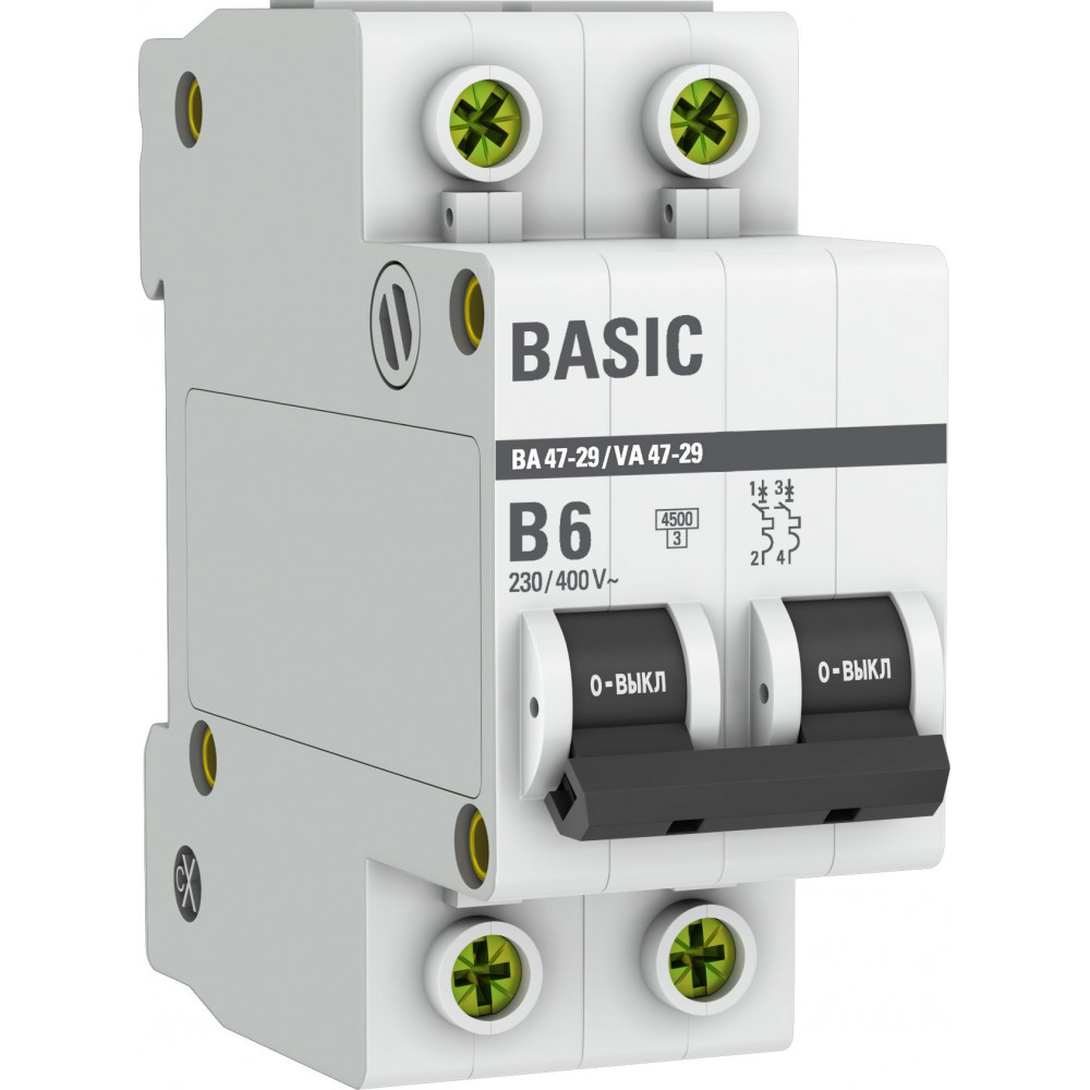 Автоматический выключатель 2P 6А (B) 4,5кА ВА 47-29 Basic mcb4729-2-06-B, Выключатель автоматический модульный