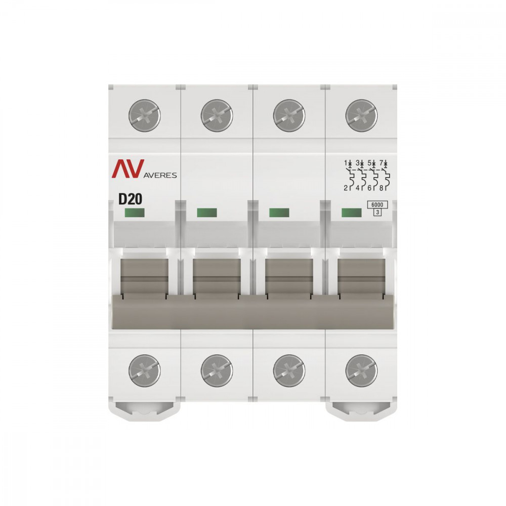 Описание mcb6-4-20D-av Выключатель автоматический AV-6 4P 20A (D) 6kA EKF AVERES(кр.1шт)