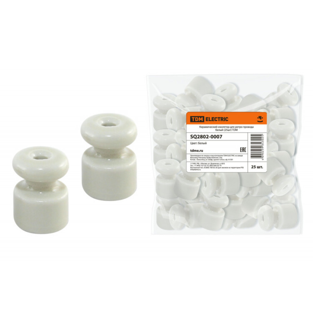 Описание Керамический изолятор для ретро провода белый (25шт) SQ2802-0007