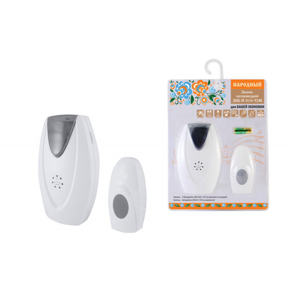 Доставка Звонок народный ЗББ-Н-11/6-32М (беспр., бат., блистер, откр.код) SQ1901-0111