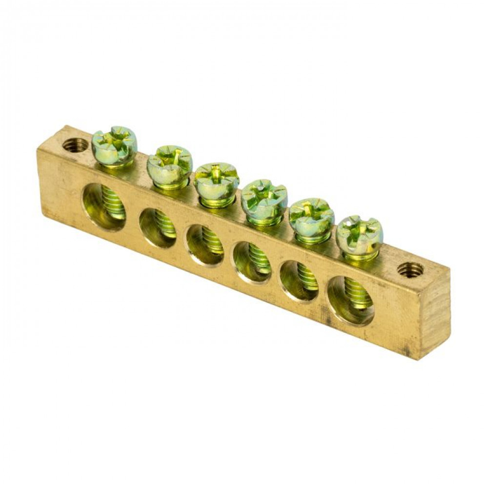 Шина PEN "ноль-земля" (8х12мм) 6 отверстий латунь крепеж по краям PROxima sn0-125-6-k, Блок клеммный и нулевая шина