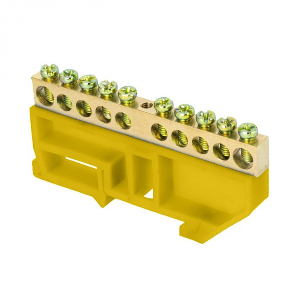 Шина "0" N (6х9мм) 10 отверстий латунь желтый изолятор на DIN-рейку розничный стикер PROxima sn0-63-10-dz-r, Блок клеммный и нулевая шина