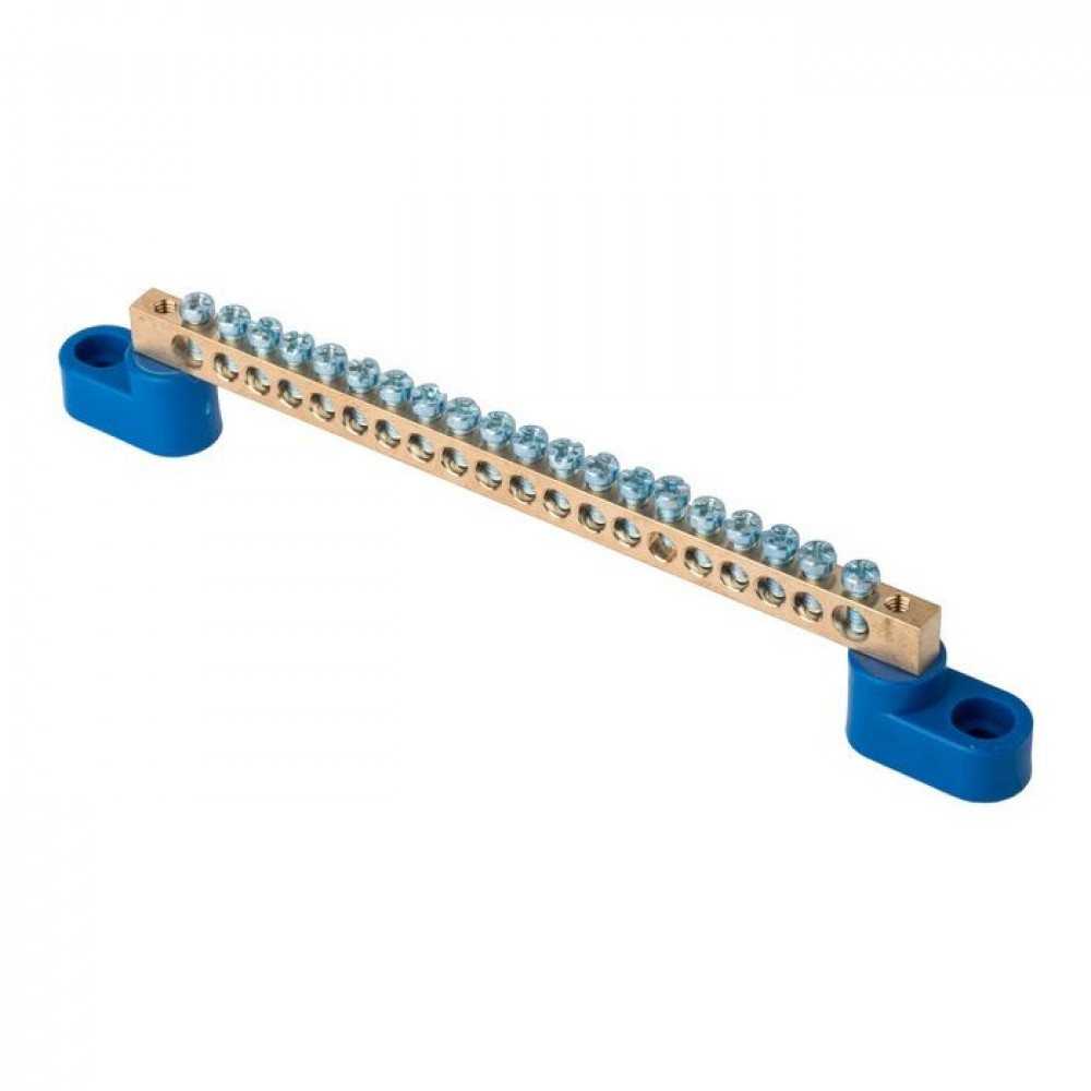 Шина "0" N (6х9мм) 20 отверстий латунь 2 синих угловых изолятора PROxima sn0-2-63-20, Блок клеммный и нулевая шина