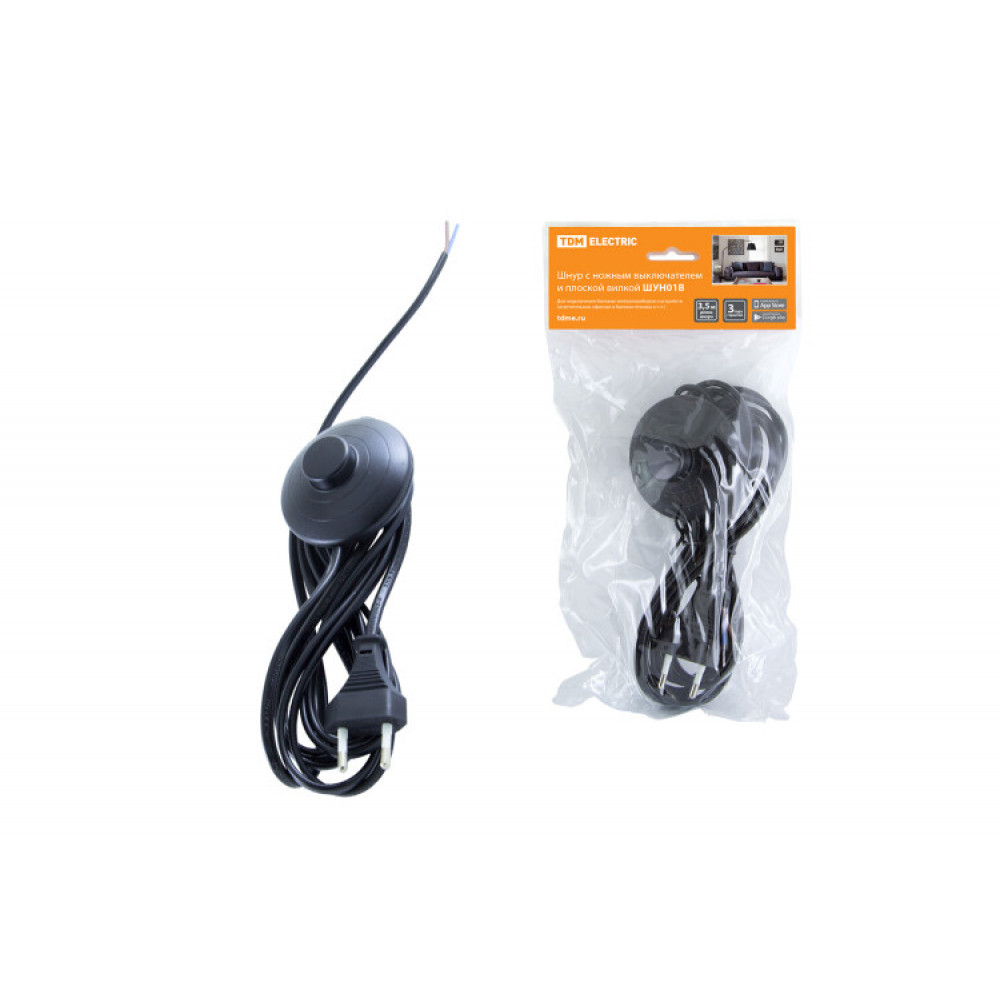 Шнур с ножным выключателем и плоской вилкой ШУН01В ШВВП 2х0,75мм2 3,5м. черный SQ1305-0062, Удлинитель, сетевой фильтр