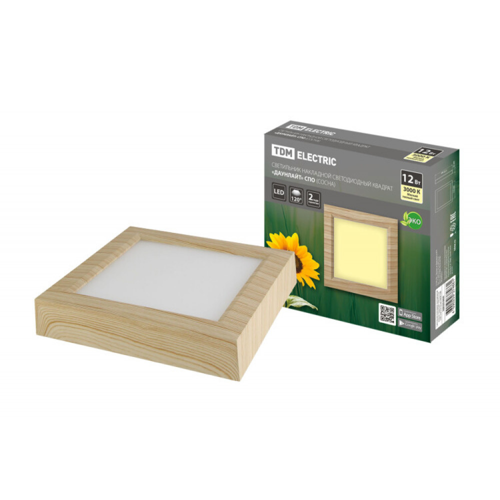Описание Светильник накладной светодиодный квадрат "Даунлайт" СПО (сосна) 12 Вт 170*170*32 мм 3000К SQ0329-0420