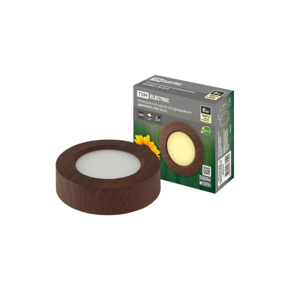Описание Светильник накладной светодиодный круг "Даунлайт" СПО (венге) 6 Вт 120*32 мм 3000К SQ0329-0412