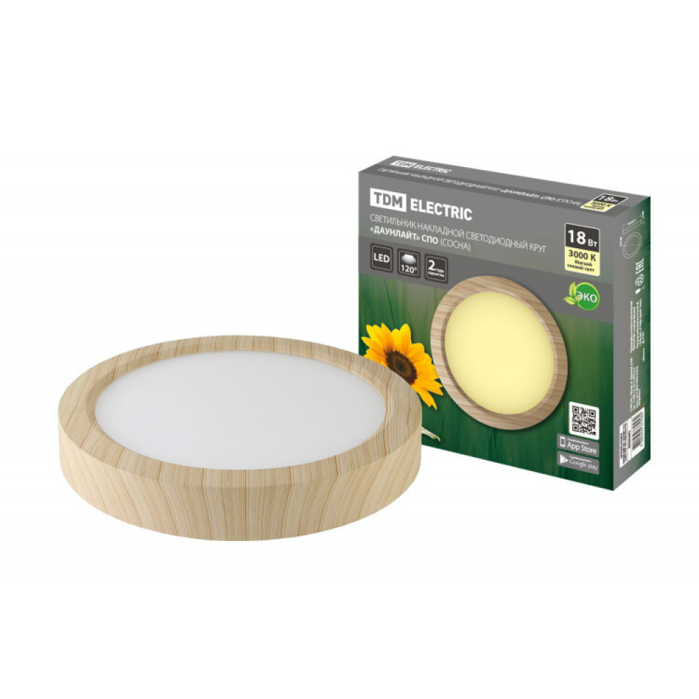 Описание Светильник накладной светодиодный круг "Даунлайт" СПО (сосна) 18 Вт 225*32 мм 3000К SQ0329-0415