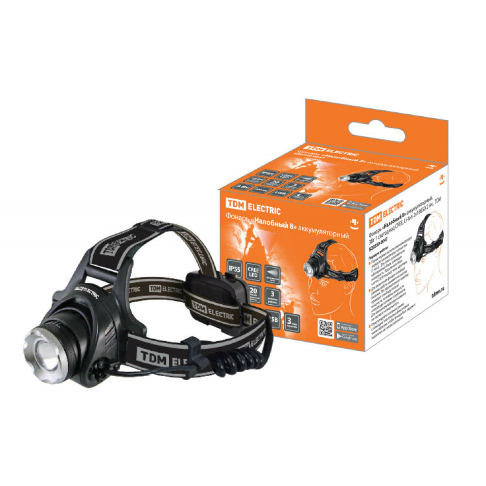 Описание Фонарь «Налобный 8» аккумуляторный, 3Вт 1 светодиод CREE, Li-Ion 2x18650 2 Ач, SQ0350-0047