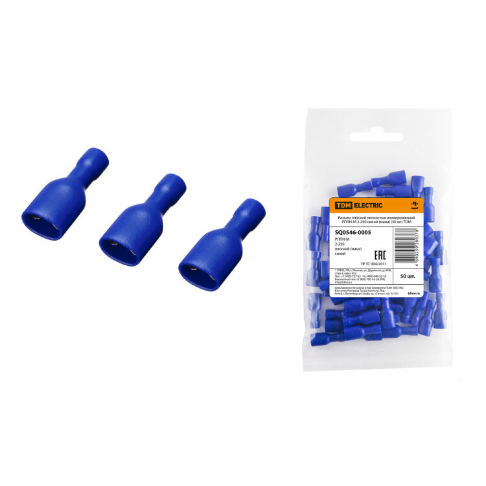 Описание Разъем плоский полностью изолированный РППИ-М 2-250 синий (мама) (50 шт) SQ0546-0005