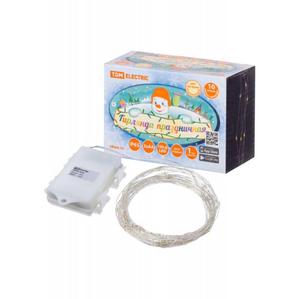 Описание Гирлянда светодиодная "Роса100" 100LED, 10м, 3000К, 3хАА, наружное использование, IP65, SQ0361-0058