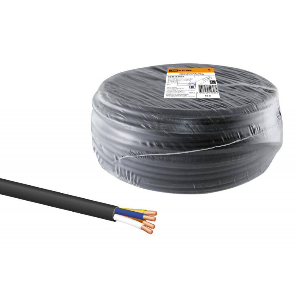 Кабель ВВГнг(А)-LS 4х2,5 ок(N, PE)-0,66 ГОСТ (50м) SQ0117-0130, Кабель и провод силовой для стационарной прокладки