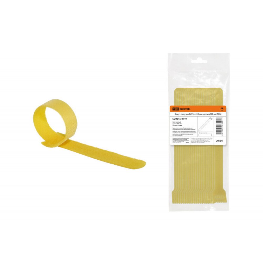 Описание Хомут-липучка ХЛ 16х310 мм желтый (20 шт) SQ0515-0719