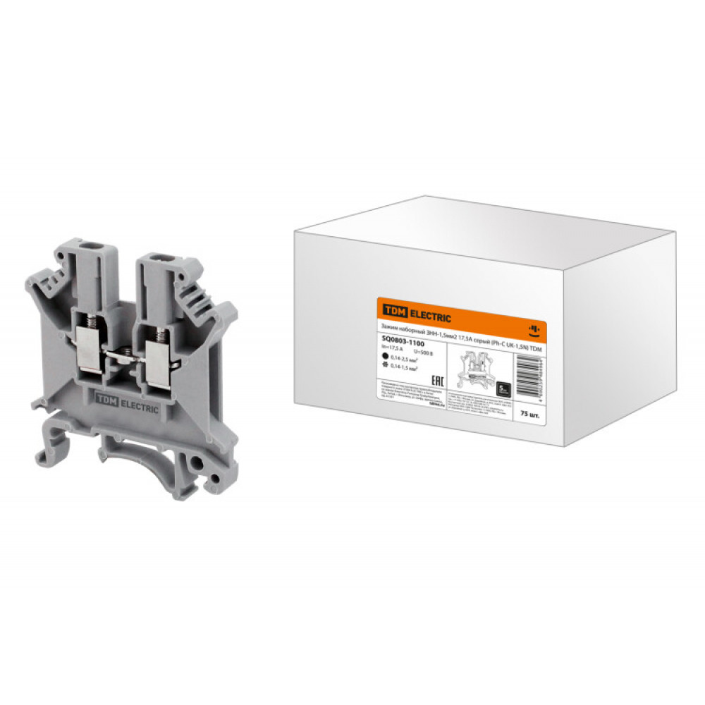 Доставка Зажим наборный ЗНН-1,5мм2 17,5А серый (Ph-C UK-1,5N) SQ0803-1100