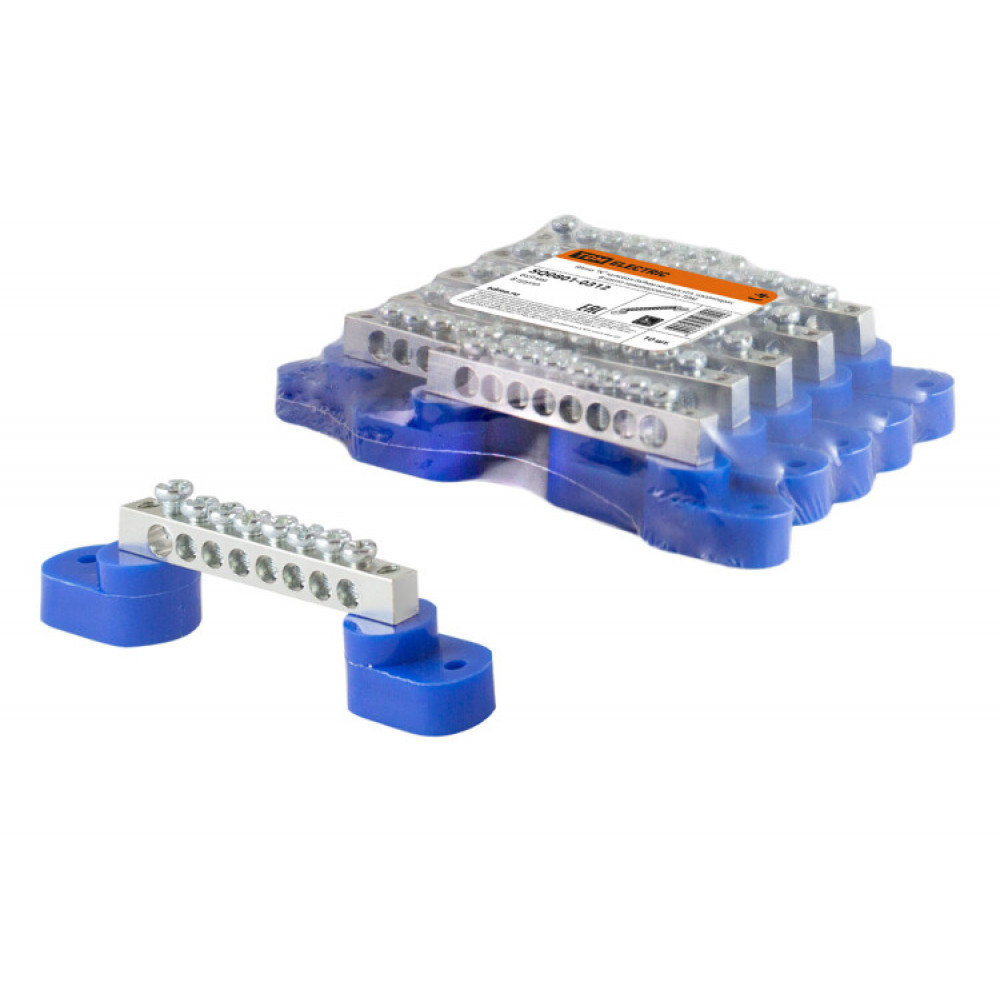 Шина "N" нулевая 6х9мм на двух угл. изоляторах 8 групп никелированная SQ0801-0312, Блок клеммный и нулевая шина