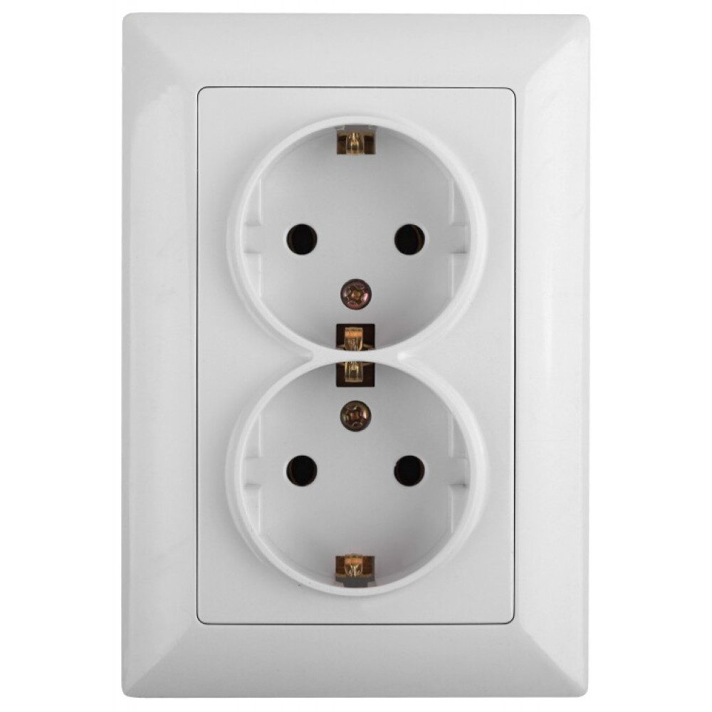 4-205-01 Розетка 2X2P+E Schuko, 16А-250В, СУ, Solo, белый (10/100/1400) Б0043333, Розетка скрытого монтажа