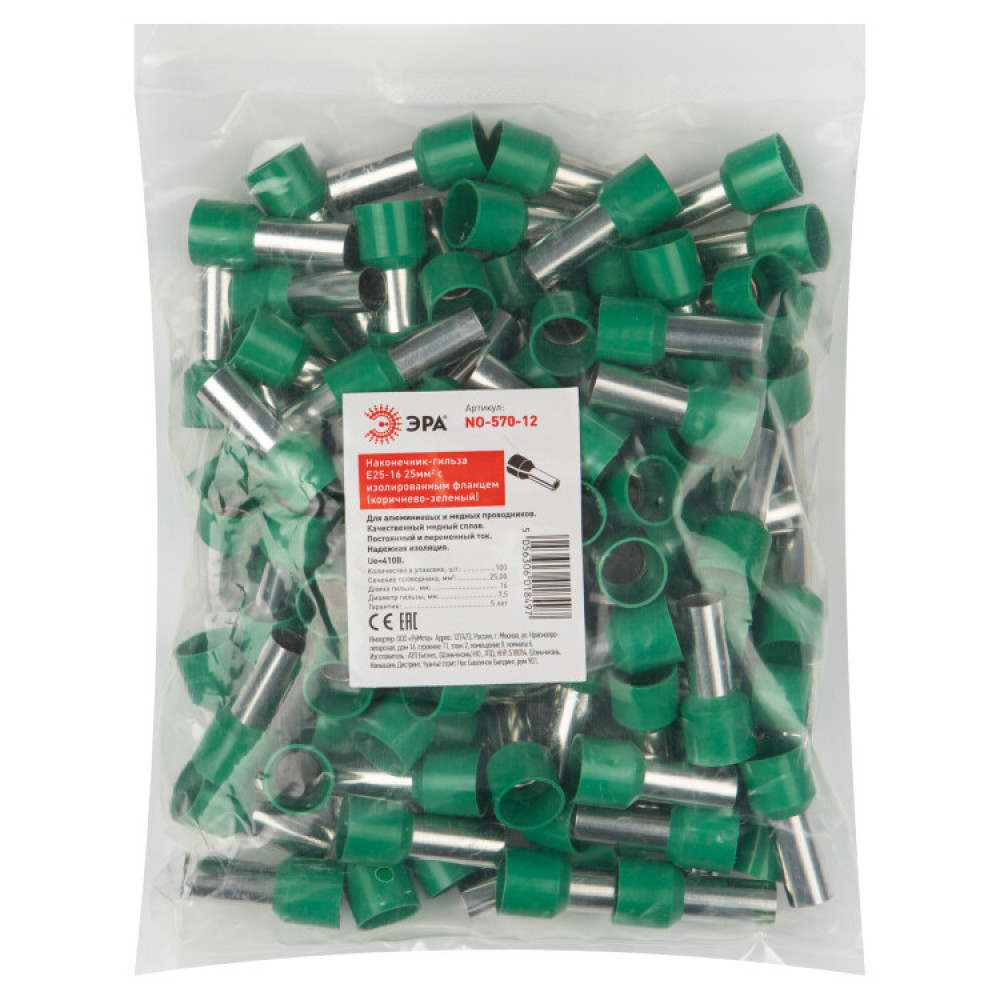 Описание NO-570-12 Наконечник-гильза Е25-16 25мм2 с изолированным фланцем (коричнево-зеленый) (100 шт) Б0041456