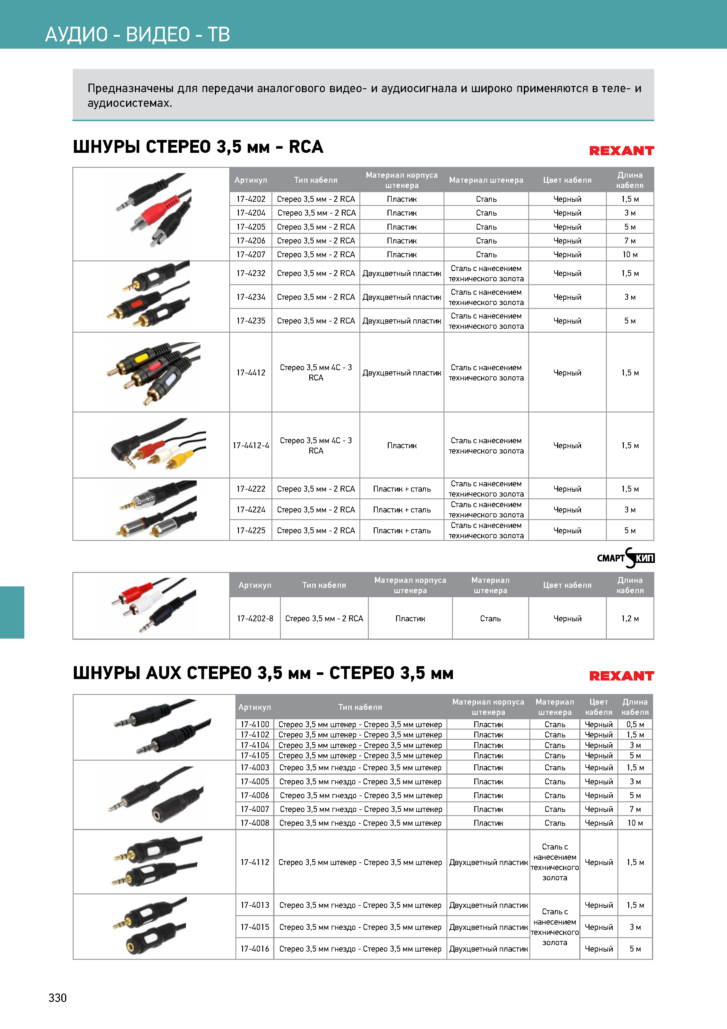 Описание Шнур Стерео 3,5мм - 2 RCA, 1,2м СМАРТКИП 17-4202-8