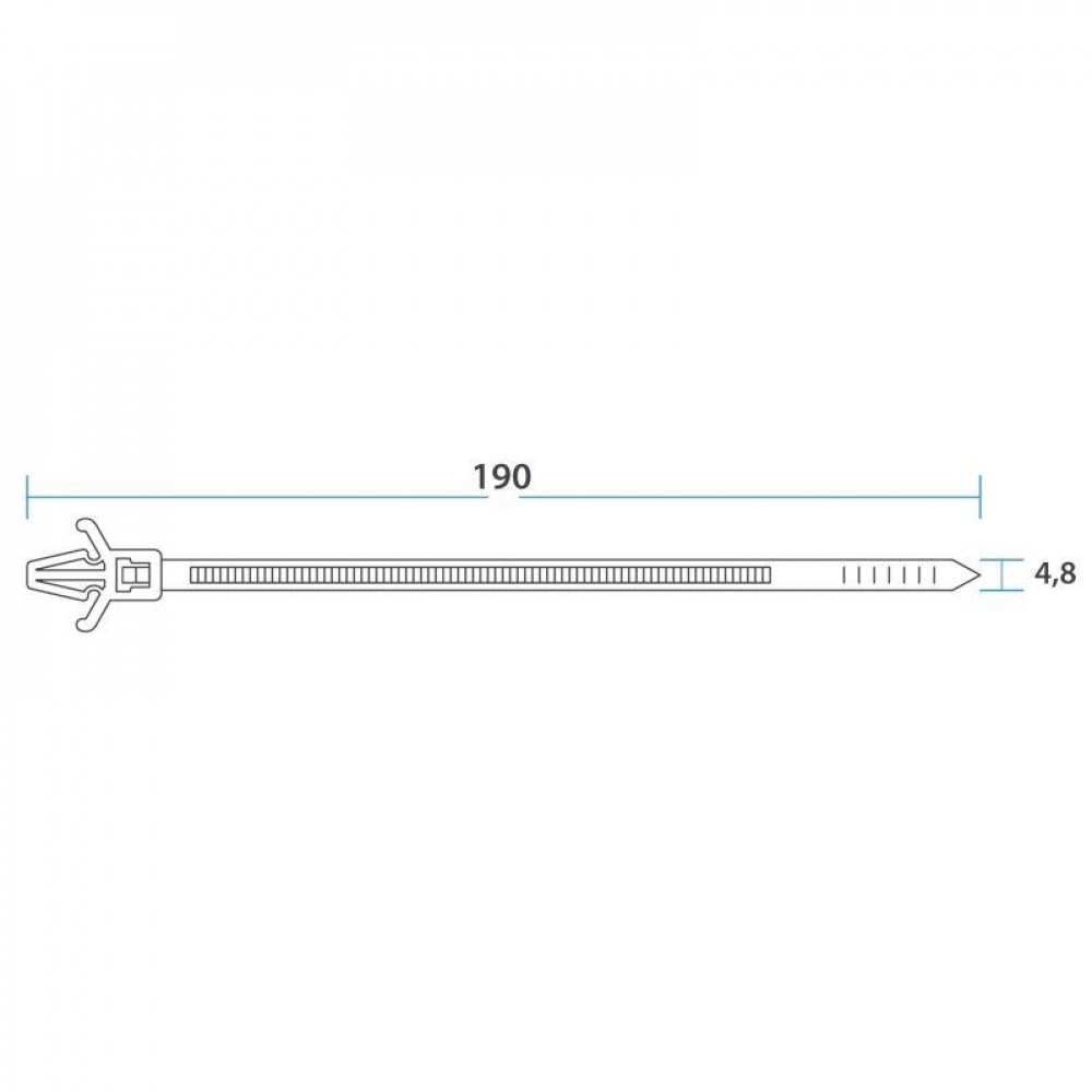 Описание Хомут-стяжка нейлоновая с крепежным пистоном 190x4,8 мм, ? 3,2 мм, белая (100 шт/уп) 07-0197