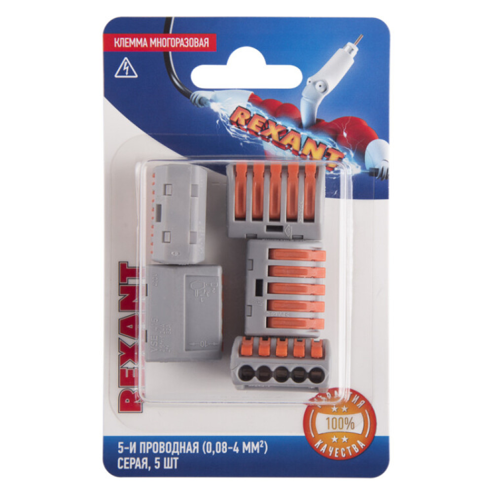 Клемма соединительная на 5 контактов, рычажный прижим проводов сечением 0.08-4мм2