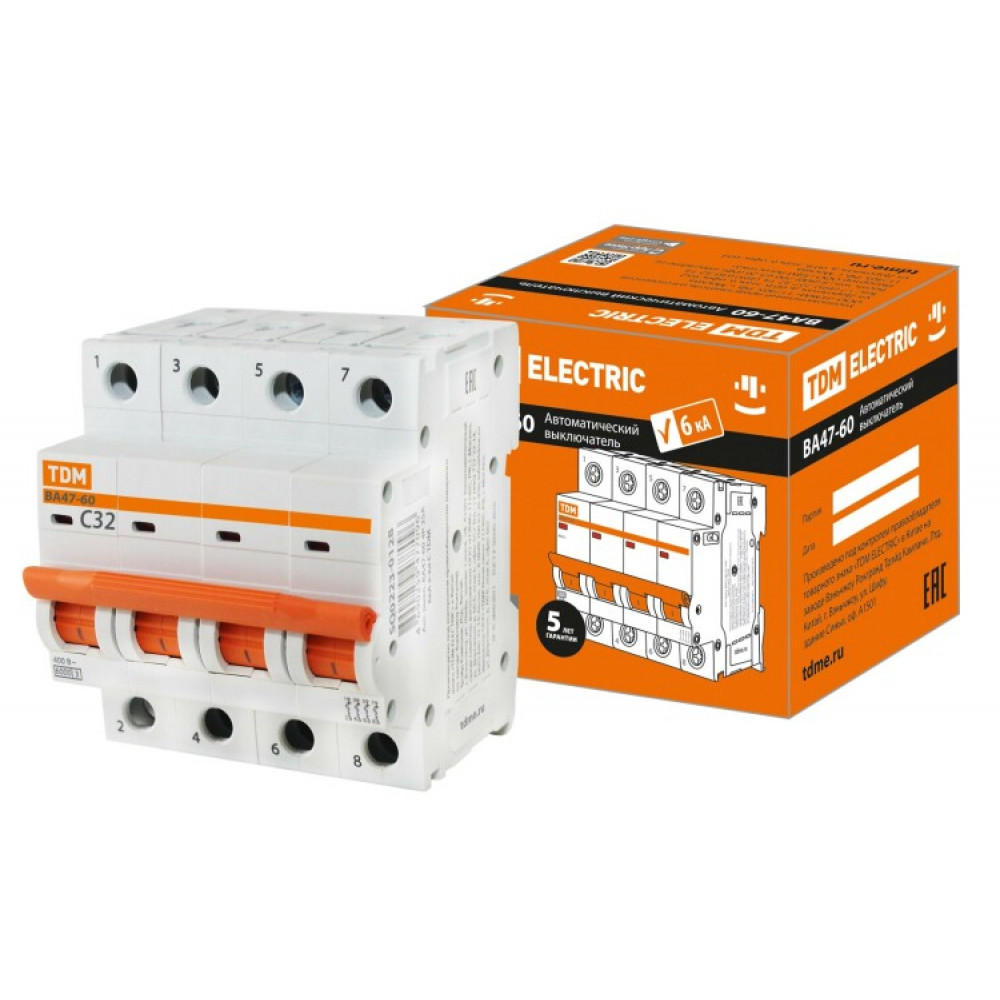 Автоматический выключатель ВА47-60 4Р 32А 6кА х-ка С SQ0223-0128, Выключатель автоматический модульный