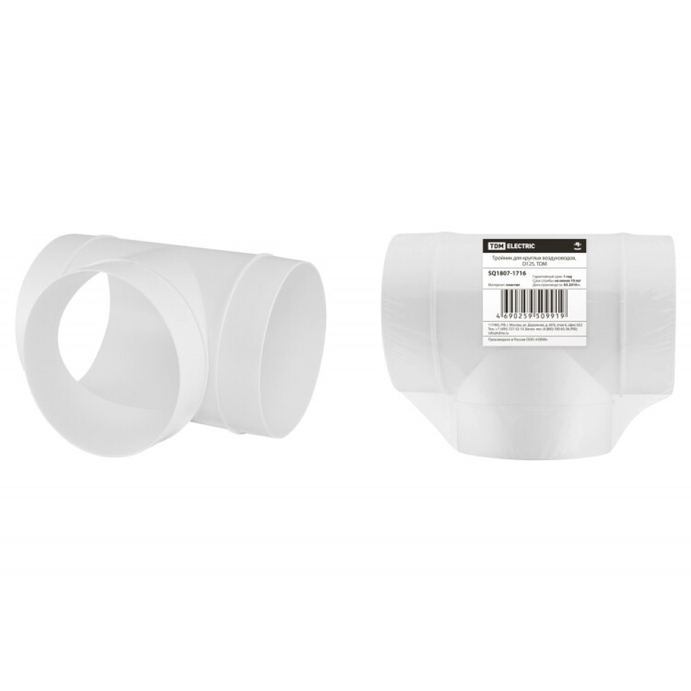 Описание Тройник для круглых воздуховодов, D125, SQ1807-1716