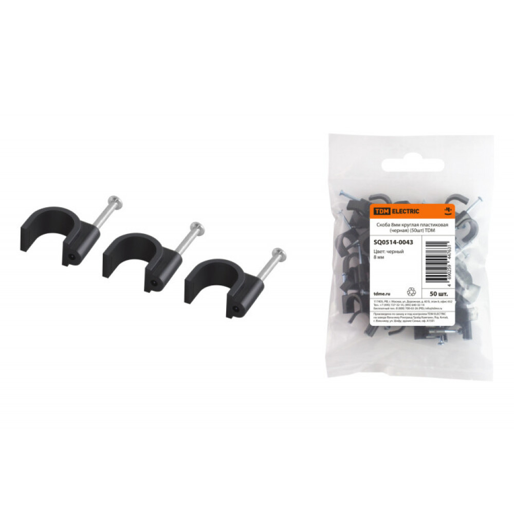 Описание Скоба 8мм круглая пластиковая (черная) (50шт) SQ0514-0043
