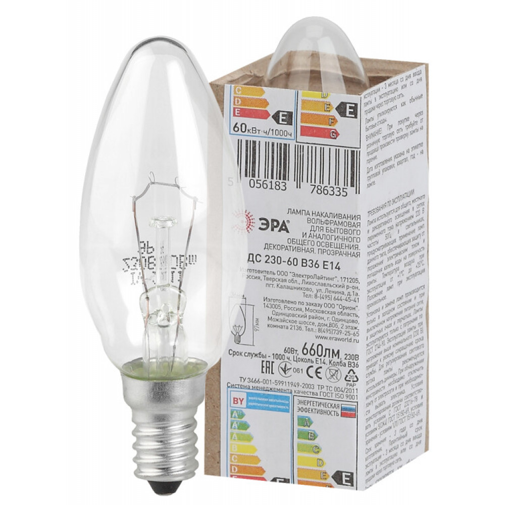 ДС (B36) свечка 60Вт 230В Е14 в гофре (100/6000) Б0039126, Лампа накаливания