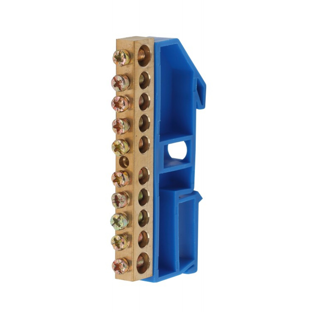 Шина NO-222-52 PE земля на DIN-изоляторе ШНИ-8х12-10-Д-синий Б0033432, Блок клеммный и нулевая шина
