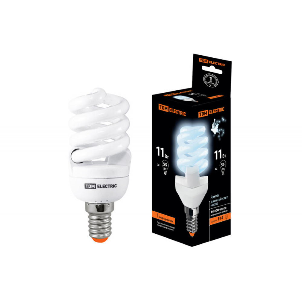 Лампа энергосберегающая КЛЛ-FSТ2-11 Вт-4000 К-Е14 (40х93 мм) SQ0323-0057, Лампа светодиодная