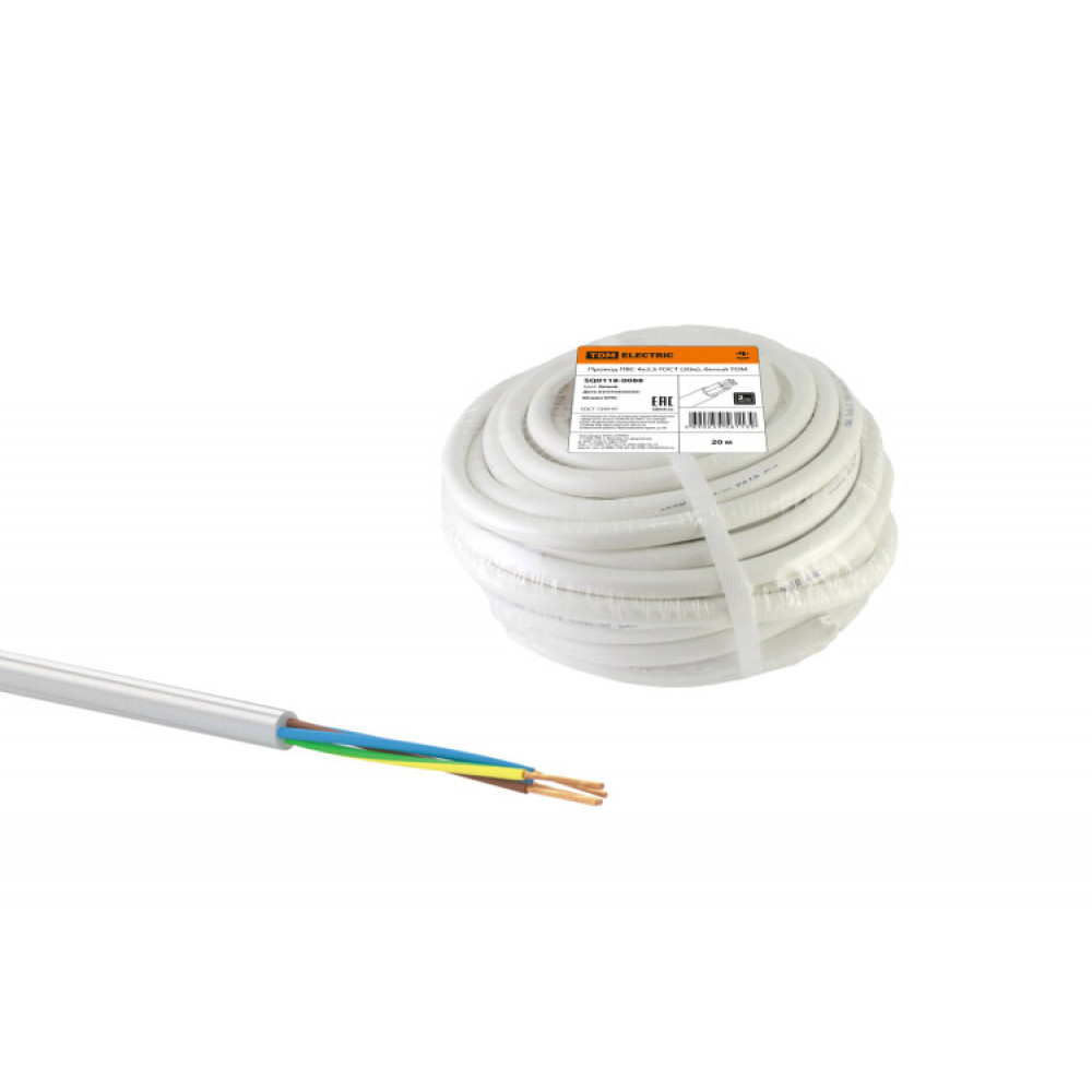 Описание Провод ПВС 4х2,5 ГОСТ (20м), белый SQ0118-0088