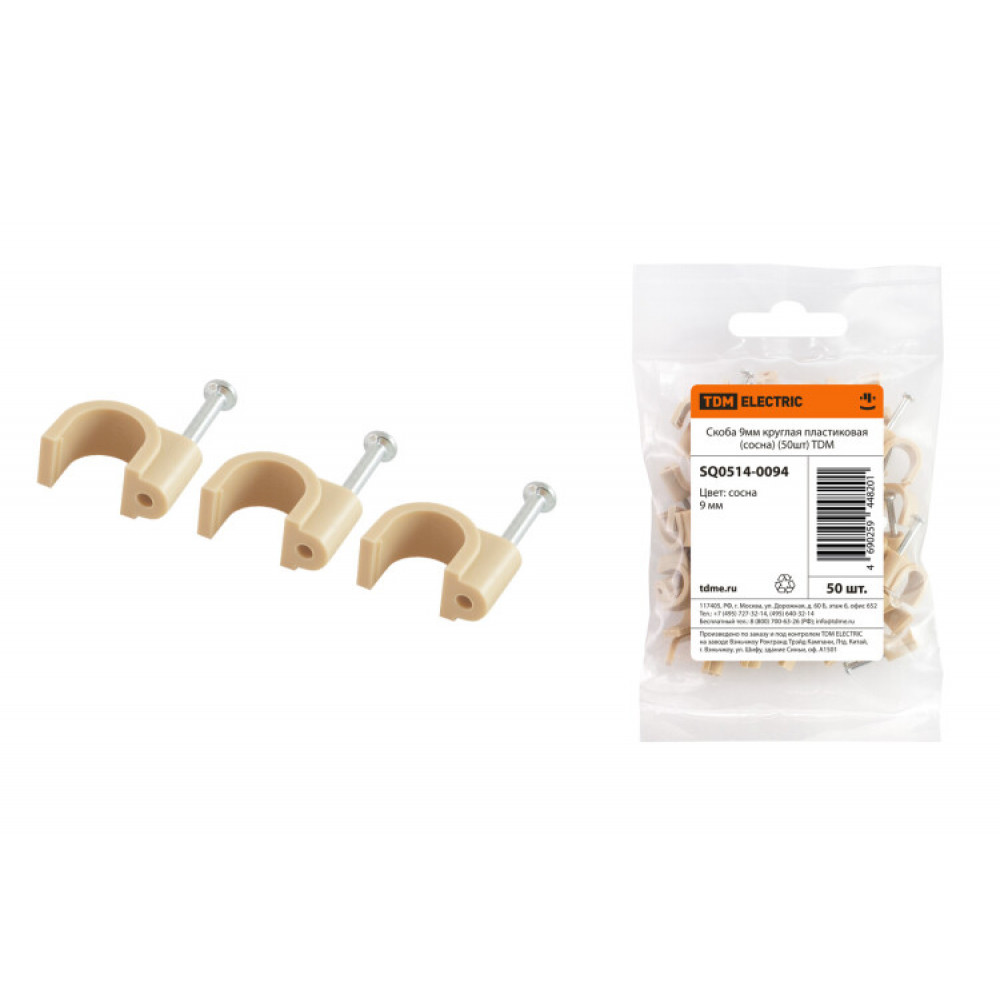 Описание Скоба 9мм круглая пластиковая (сосна) (50шт) SQ0514-0094