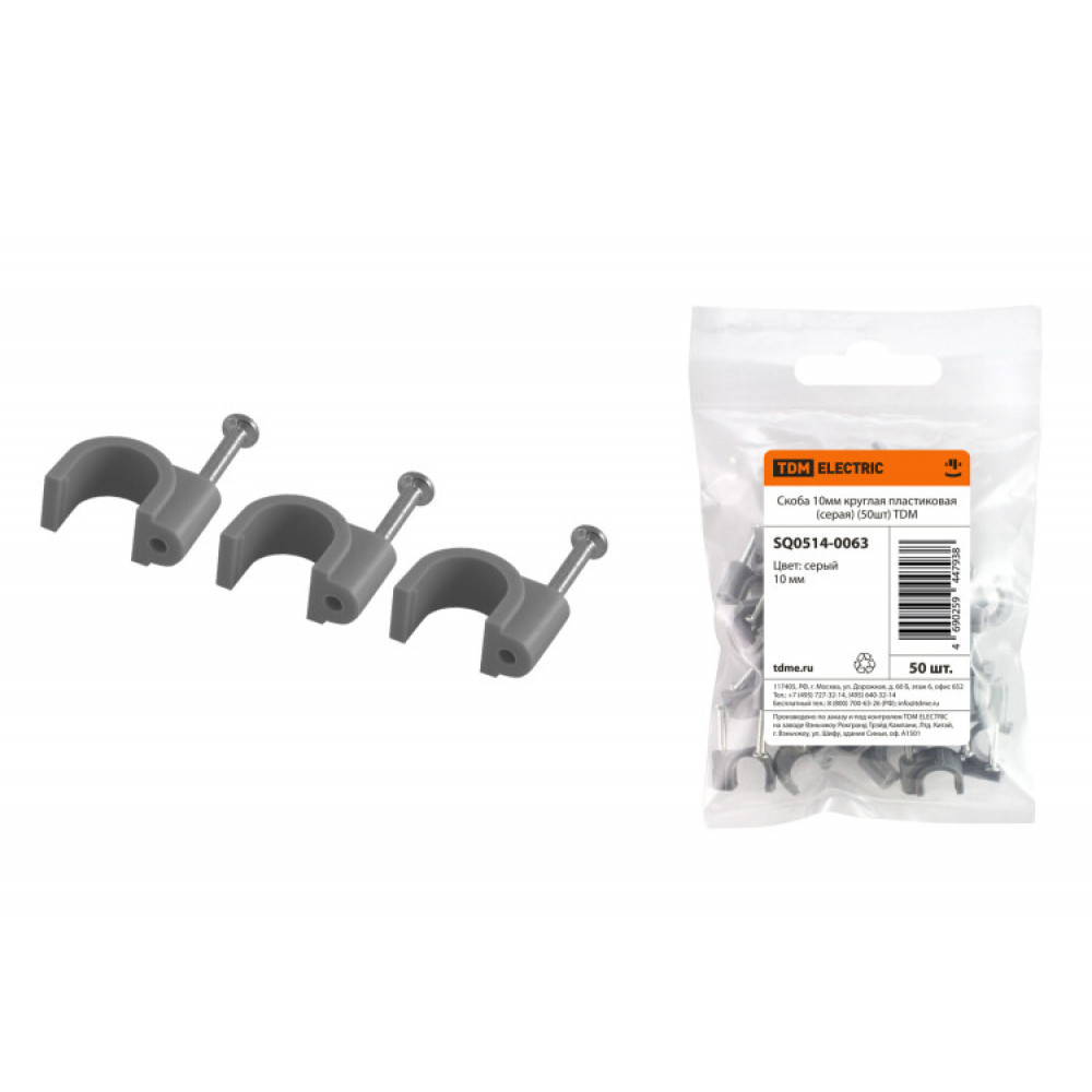Скоба 10мм круглая пластиковая (серая) (50шт) SQ0514-0063