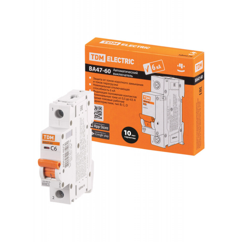 Доставка Автоматический выключатель ВА47-60 1Р 6А 6кА х-ка С SQ0223-0073