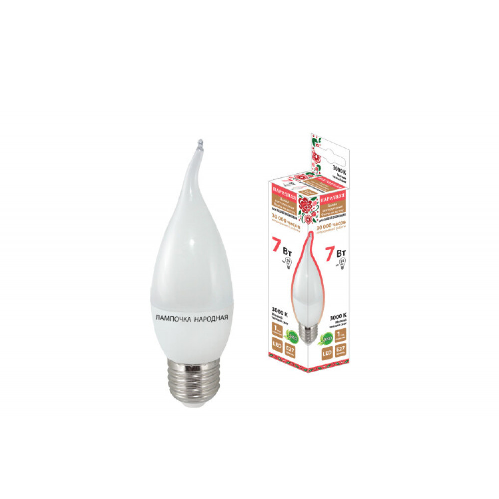 Лампа светодиодная WFC37-7 Вт-230 В -3000 К–E27 (свеча на ветру) Народная SQ0340-1546, Лампа светодиодная