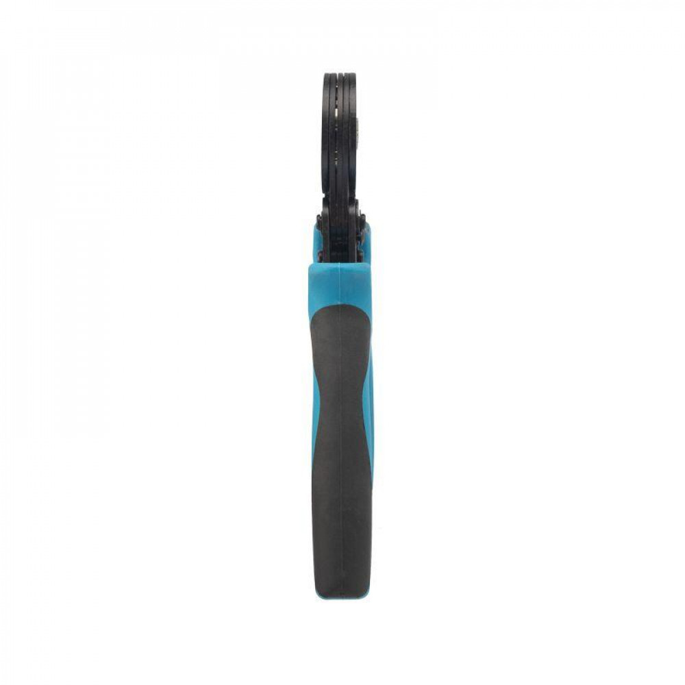 Кримпер REXANT HT-866 предназначен для опрессовки штыревых наконечников в диапазоне 0.08-6.0 мм.кв. Корпус выполнен из высокопрочной закаленной инструментальной стали (сплав хрома и ванадия) и имеет закругленные линии корпуса для удобства и безопасного использования. Шестисегментная саморегулирующая матрица с системой поворотных кулачков диафрагменного типа. Клещи имеют настройку давления опрессовки и принудительно размыкающуюся блокировку, которая не позволяет разойтись рукояткам до полной опрессовки, т. е. контролирует качество контактного соединения. Храповой механизм, гарантирует полный цикл качественной опрессовки. Рукоятки выполнены из плотного синтетического покрытия с резиновыми вставками, благодаря которому руки не будут скользить.