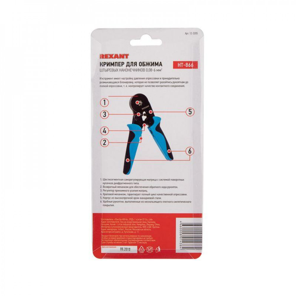 Описание Кримпер HT-866 для обжима штыревых наконечников 0.08-6.0 мм? 12-3205