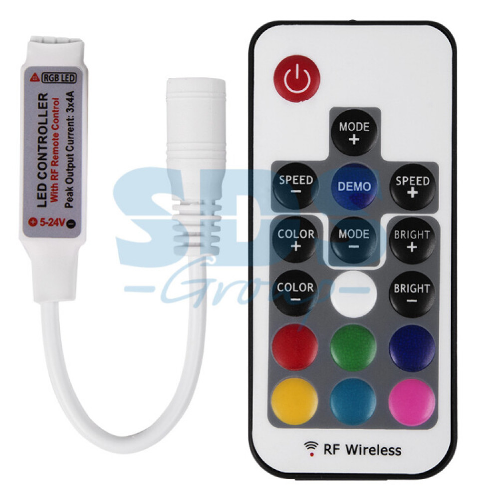 LED мини контроллер радио (RF) 72 W/144 W, 17 кнопок, 12 V/24 V 143-106-4, Контроллер