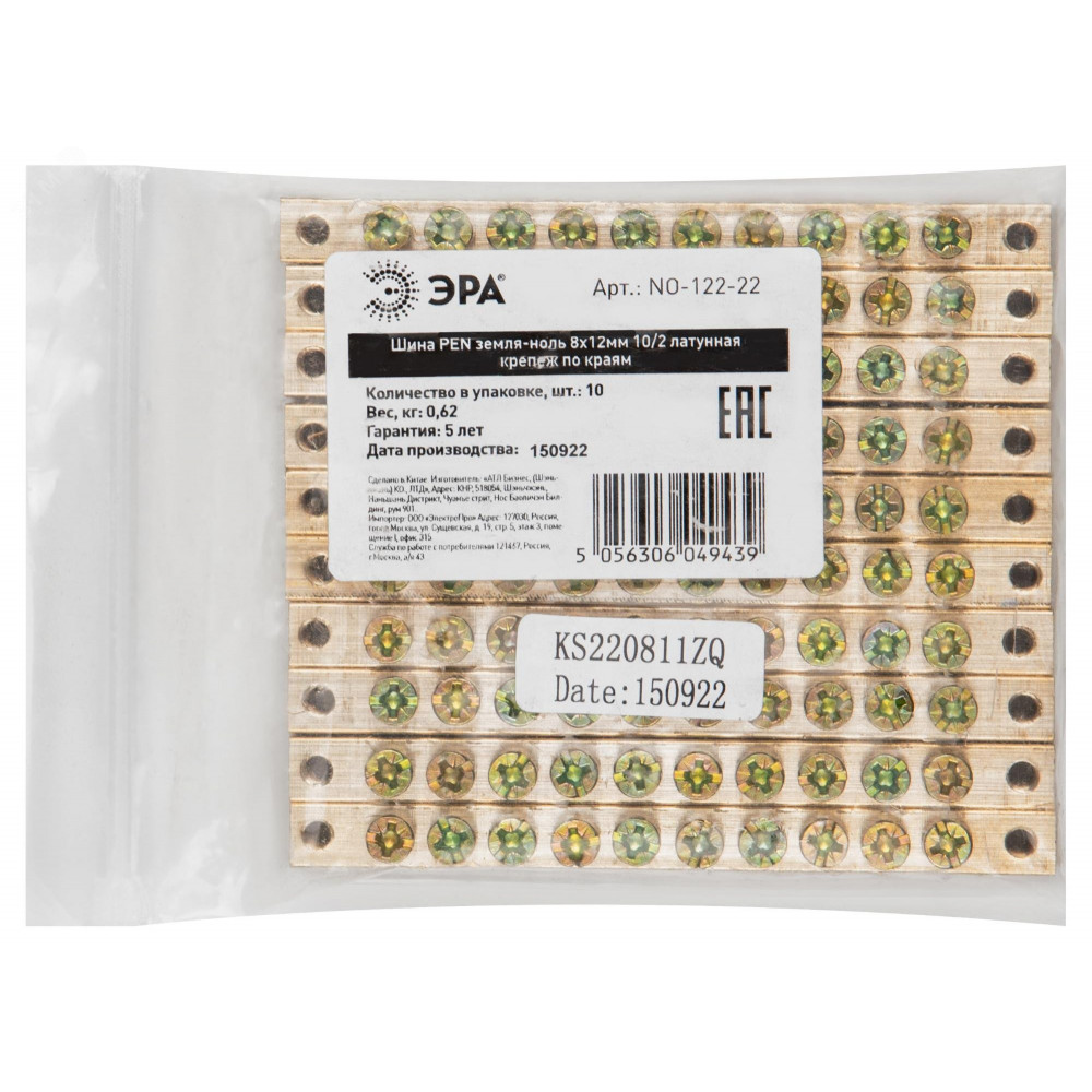 Описание Шина NO-122-22 PEN земля-ноль 8х12мм 10/2 латунная крепеж по краям Б0047237