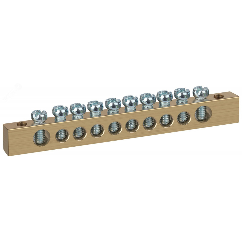 Шина NO-122-22 PEN земля-ноль 8х12мм 10/2 латунная крепеж по краям Б0047237, Блок клеммный и нулевая шина