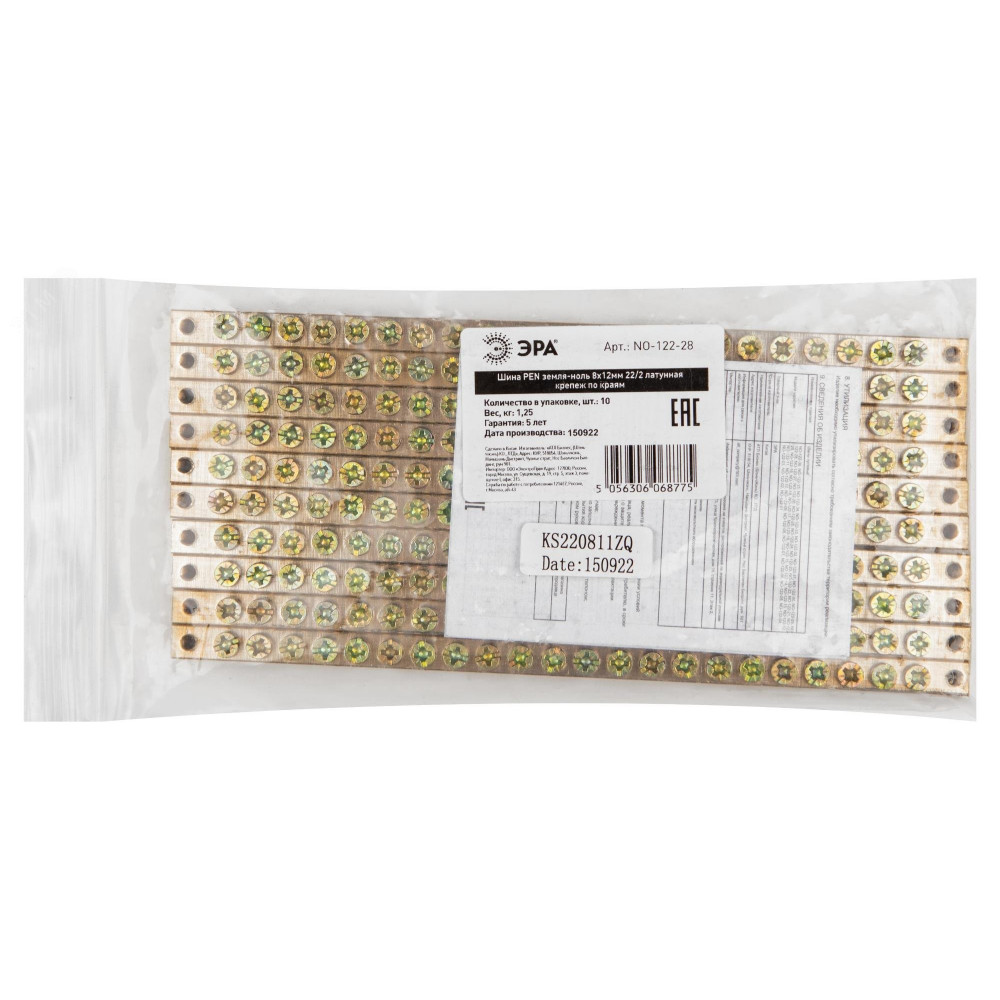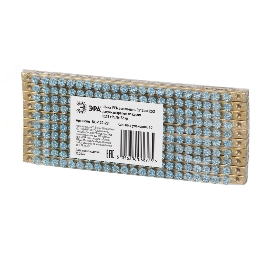 Шина NO-122-28 PEN земля-ноль 8х12мм 22/2 латунная крепеж по краям Б0047243, Блок клеммный и нулевая шина