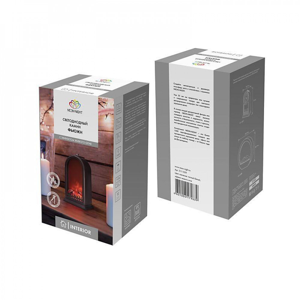 Описание Светодиодный камин Фьюжн с эффектом живого огня 14,7x11,7x25 см, батарейки 2хС (не в комплекте) USB, черный 511-039