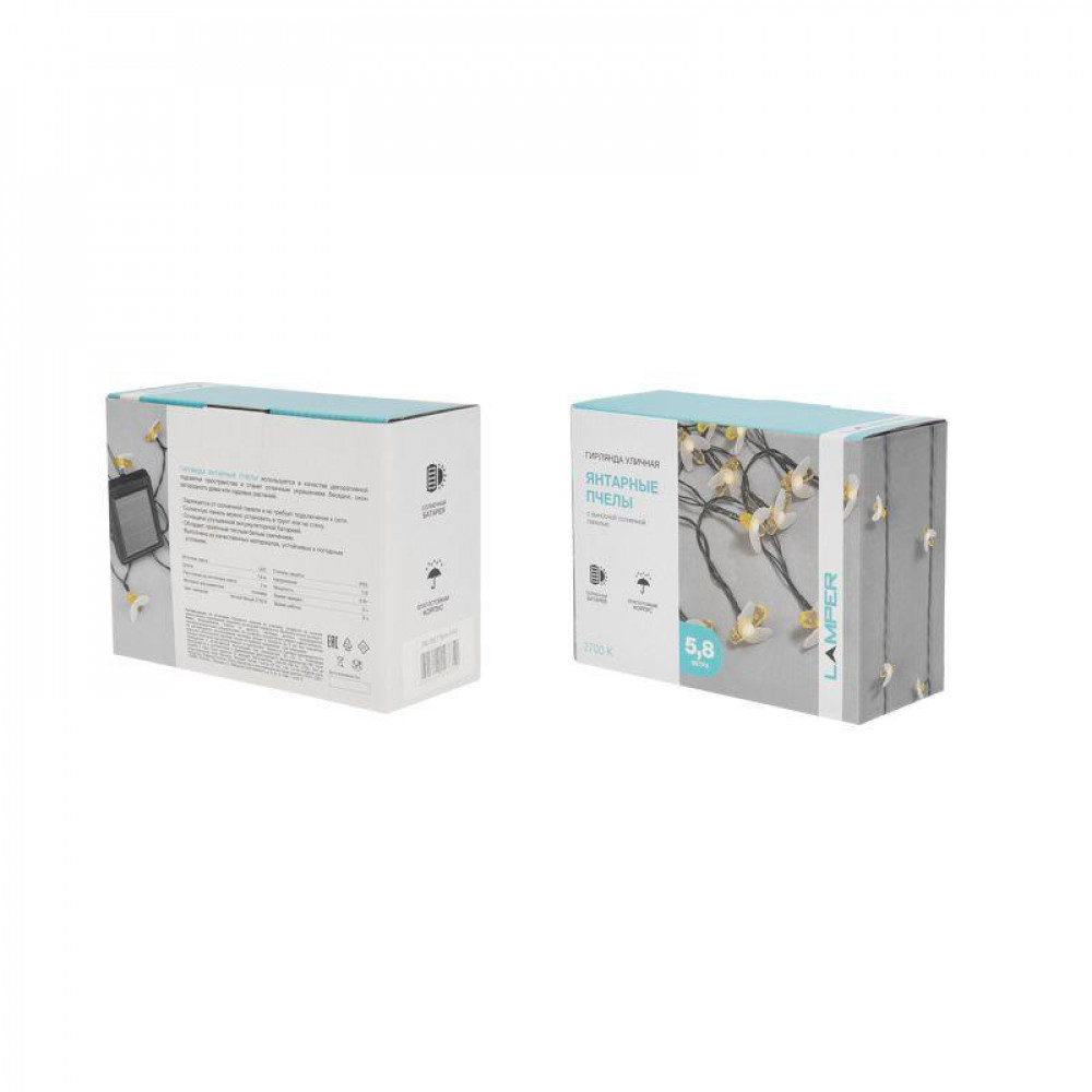 Описание Гирлянда садовая (каскад) Янтарные Пчелы 5,8м, 2700К с аккумулятором и выносной солнечной панелью 602-252