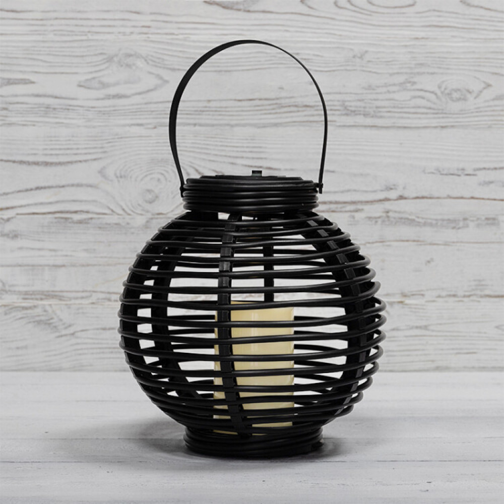Декоративный фонарь на солнечной батарее 20х20х22 см, черный плетеный корпус, теплый белый цвет свечения 501-143